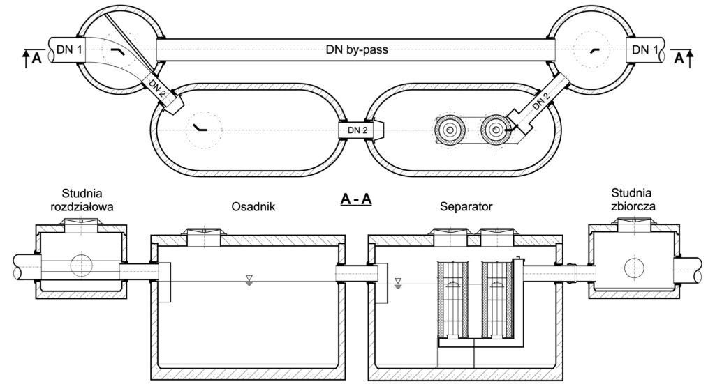 Układy urządzeń do oczyszczania wód deszczowych z zewnętrzym obejściem hydrałicznym ZOH